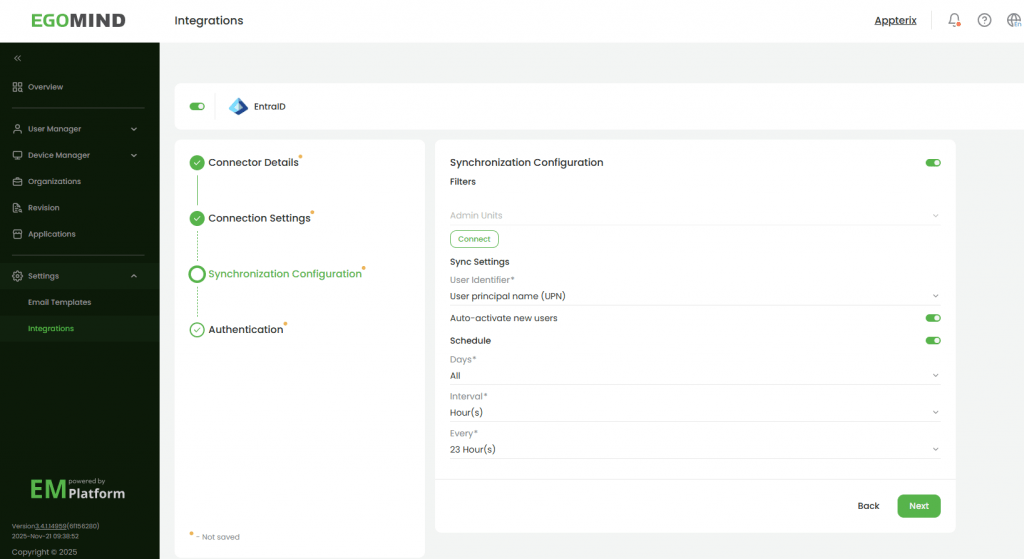 Ebenfalls können neue Benutzer automatisch aktiviert und die automatische Synchronisation nach dem definierten Zeitplan eingerichtet werden.