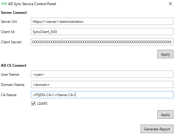 Um die AD CS Anbindung einmalig einzurichten benötigen Sie das AD Sync Control Panel, welches mit dem AD Sync Service installiert wird.